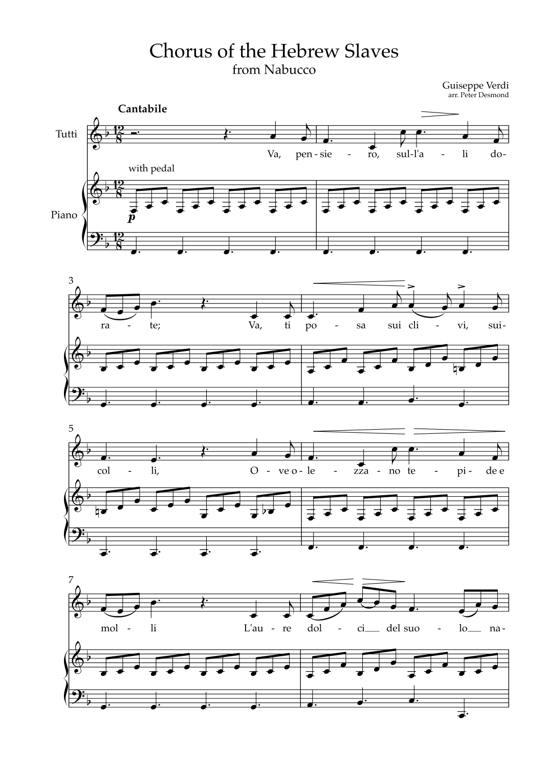 Chorus of the Hebrew Slaves (arr. Peter Desmond) Sheet Music Verdi Choir